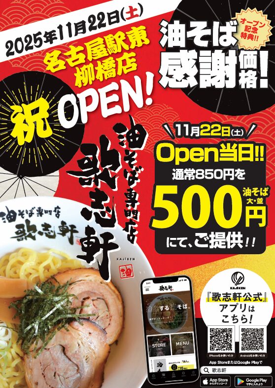 歌志軒 名古屋駅東柳橋店 グランドOPEN!!