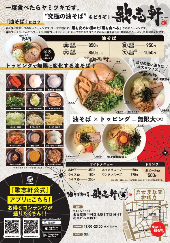 名古屋の油そば専門店【歌志軒】麺を極めたスープのないラーメン
